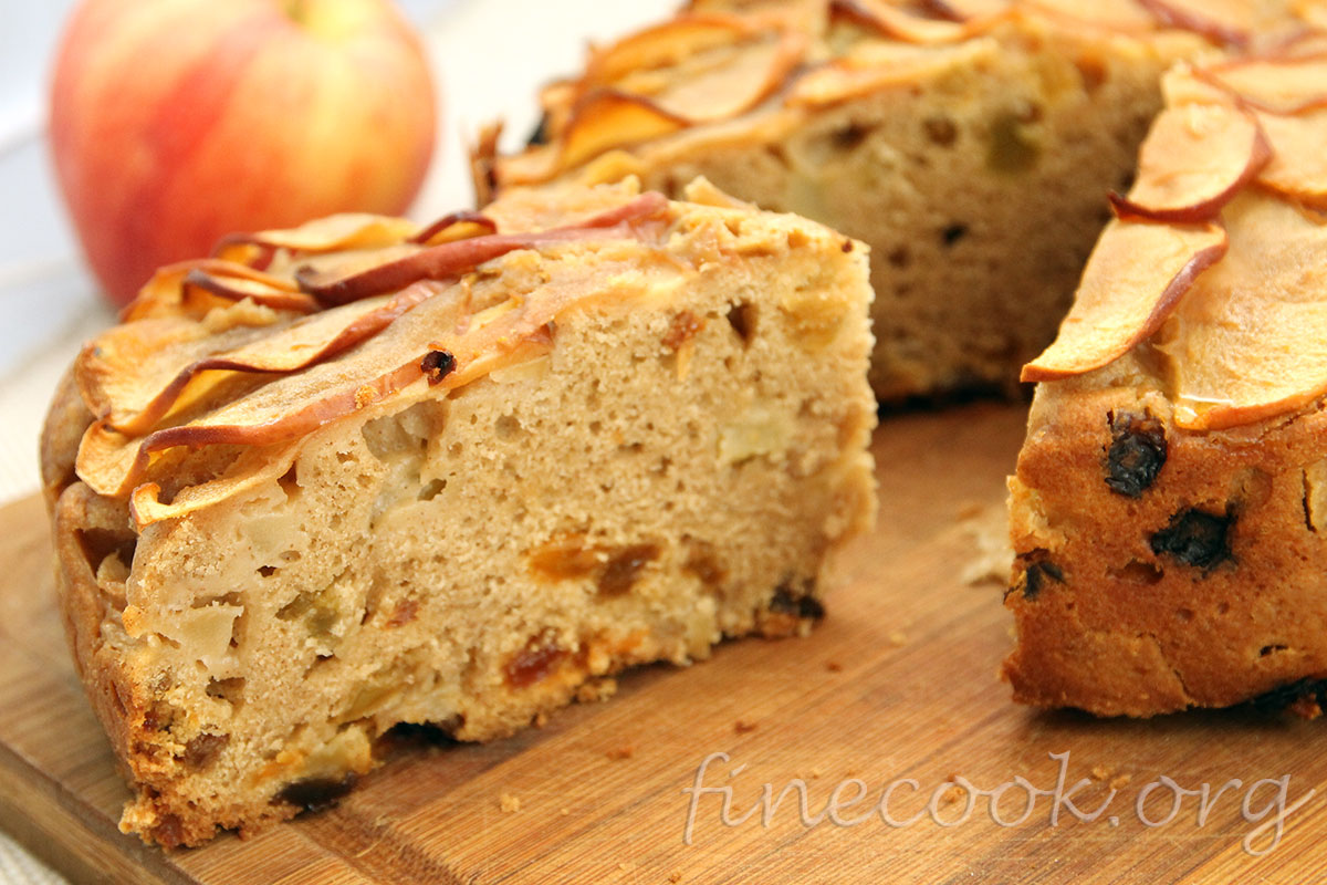 - Поставить в предварительно нагретую духовку и запекать в течение 90-110 минут или пока пирог не будет готов. Если яблоки сверху начинут слишком коричневеть, то пирог накрыть фольгой.