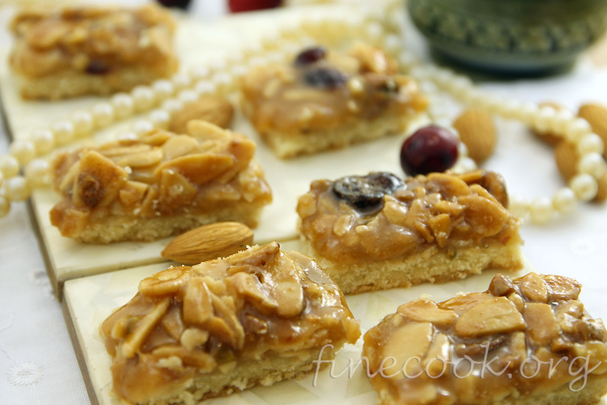 - Когда остынут, аккуратно отделить от бумаги для выпечки и переложить на доску для нарезки. Обрезать края и нарезать на квадратики