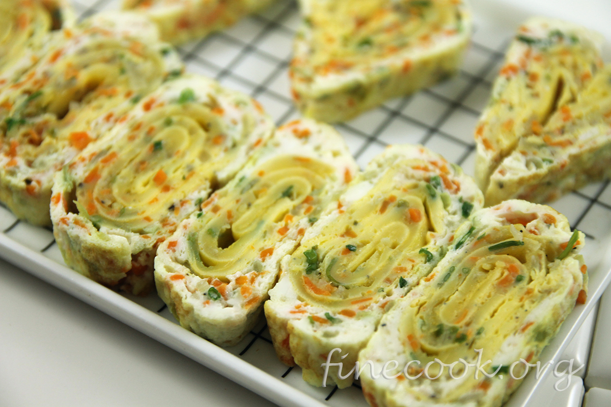 - Опять, когда желток снизу подпечётся, продолжить заворачивать рулет