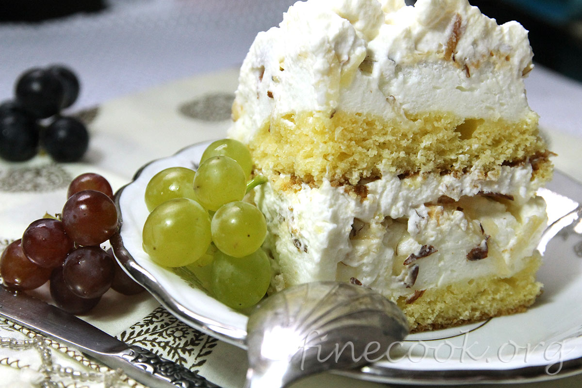- Пока торт запекается, взбить сливки. Не перевзбивать