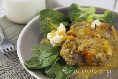 - Овощи мелко порезать и потушить (обжарить) (например лук и фенхель). Можно и не обжаривать, тогда овощи могут получиться хрустящими.