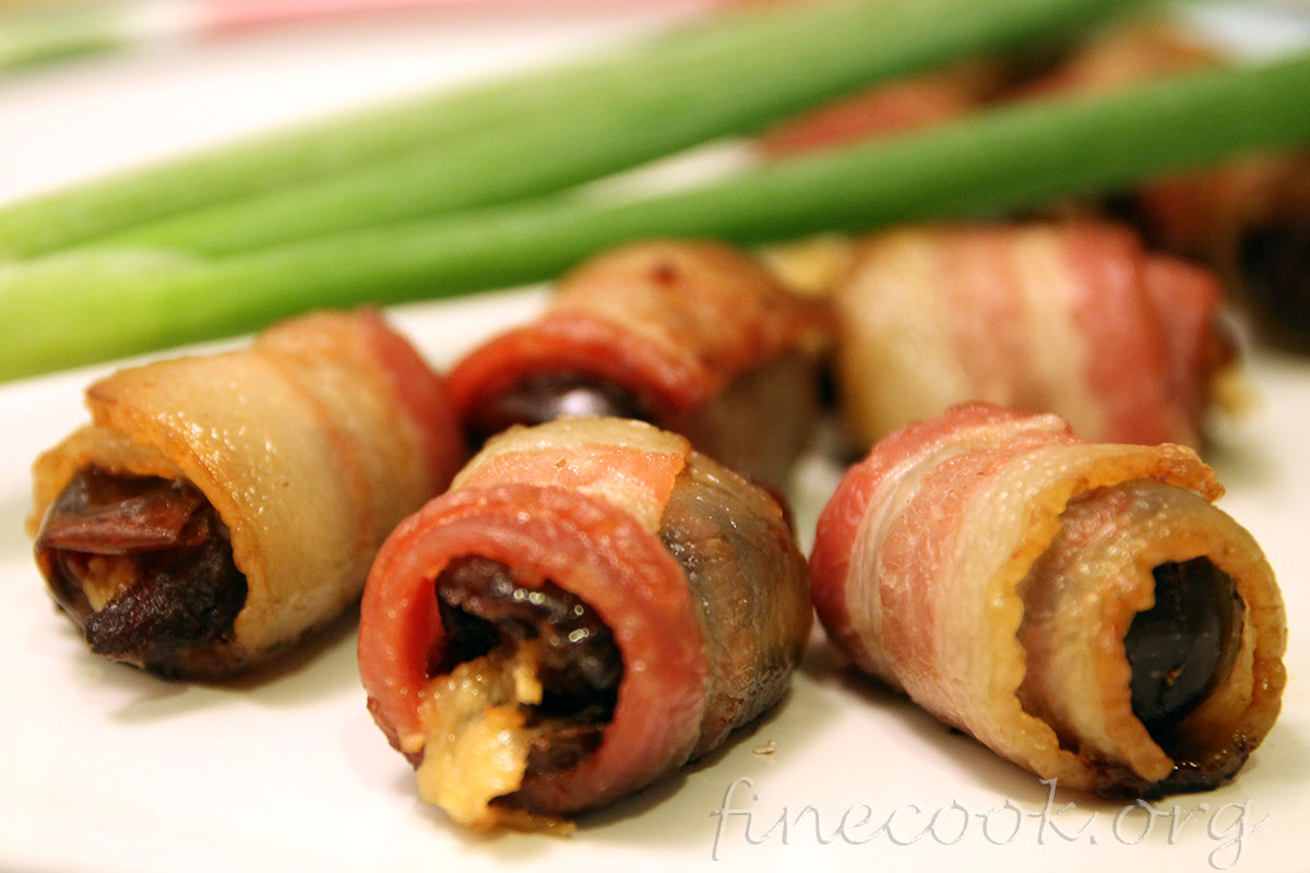 - Нагреть духовку до 180°С (350°F) - Аккуратно удалить косточку из финика. Отложить в сторону - Острым ножом нарезать сыр на куски толщиной 0,5 см. Эти кусочки нарезать на 2,5х0,5х0,5 см. Должны получится кусочки по диаметру примерно как карандаш. Обрезать уголком в 45° с одной стороны. - Аккуратно кончиком с углом в 45° засунуть сыр в финики