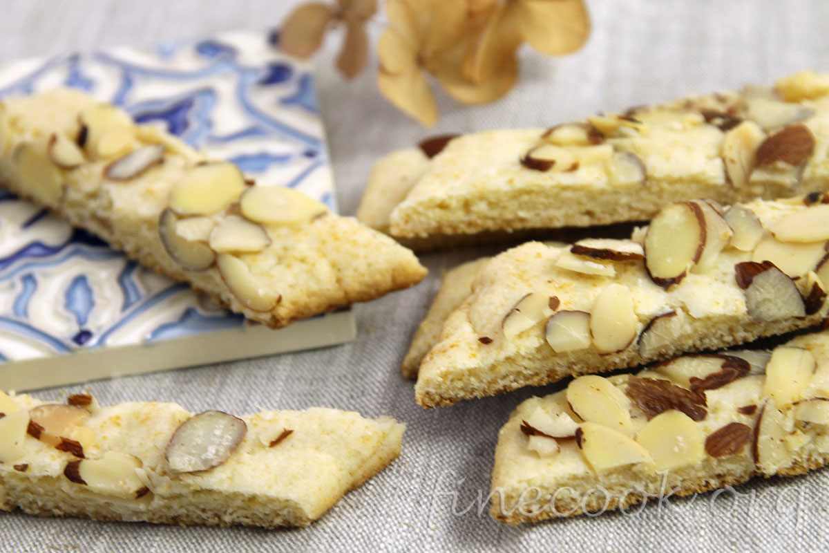 - Смазать полоски молоком и посыпать миндальными хлопьями
