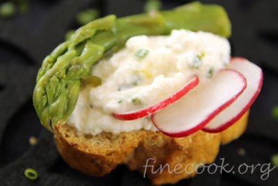 Бутерброды смотрятся очень красиво - белая рикотта, ярко-зелёный аспарагус и розовая редиска. Сочетание вкусов тоже очень хорошее. Немного остренькое за счёт чеснока и чуть с кислинкой из-за лимона. Готовила уже не раз для гостей и всегда всем нравится. Отличная идея сделать в качестве закуски для